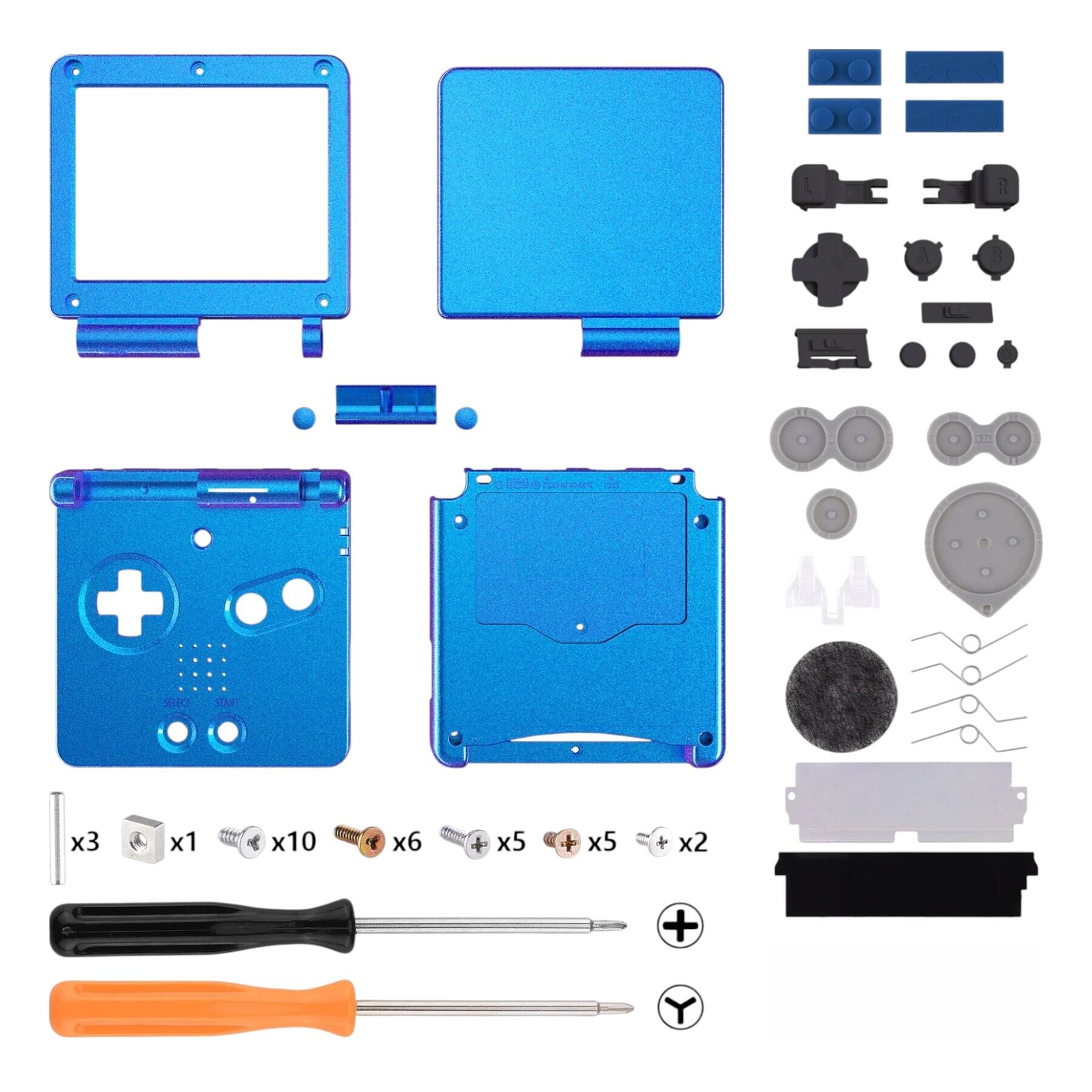 ゲームボーイアドバンスSP用のシェルキットです。高品質ABSを使用した互換シェルで、純正液晶、IPS液晶のどちらにも対応しています。取り付け方法等は動画を参照してください。