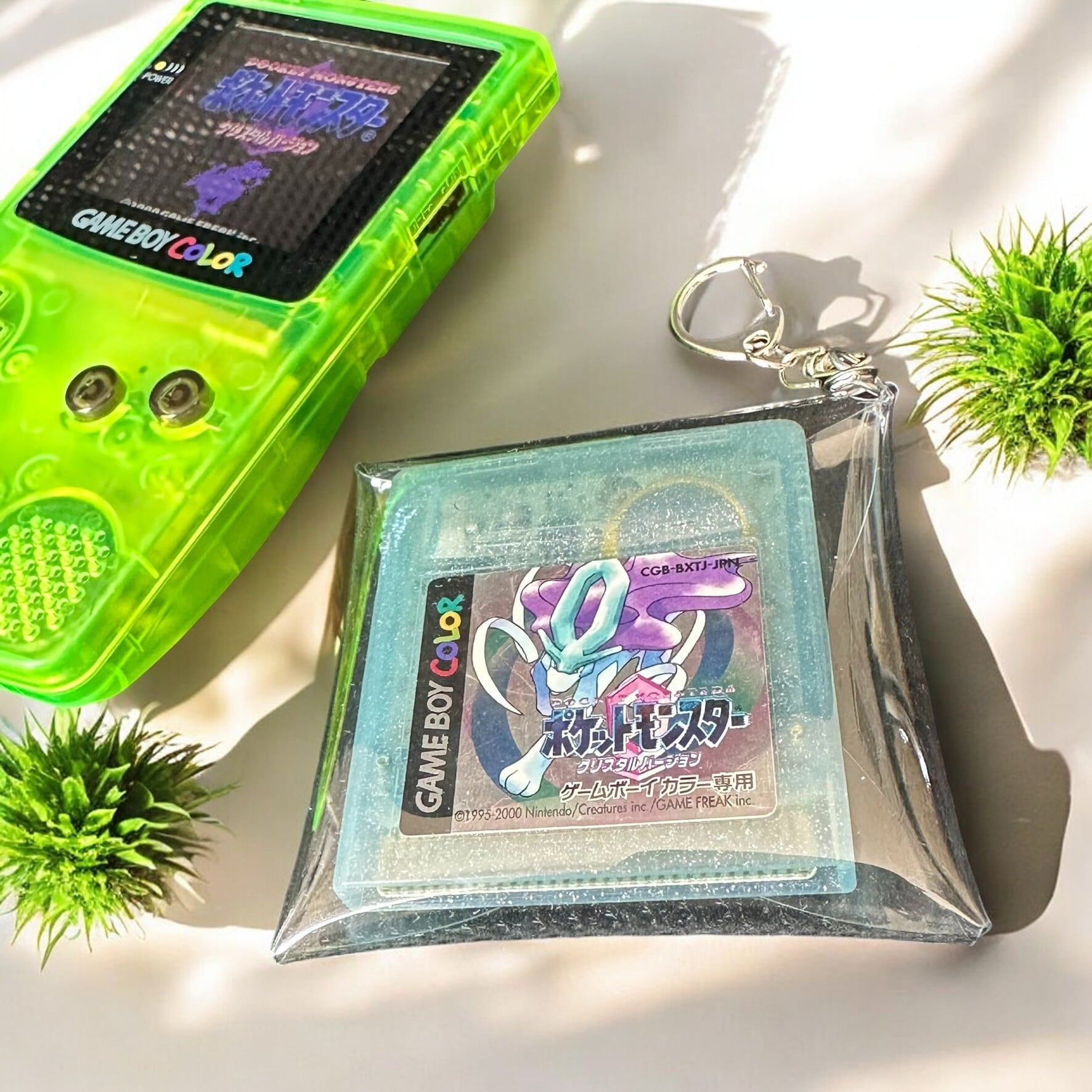 ゲームボーイやゲームボーイアドバンス用ソフトを入れてキーホルダーとして持ち歩けるケースです。ゲームボーイ(ゲームボーイカラー)ソフトは1本、ゲームボーイアドバンスソフトは2本入ります。また、本体とキーホルダーのチェーン部分を通している穴には補強リングを装着してあります。